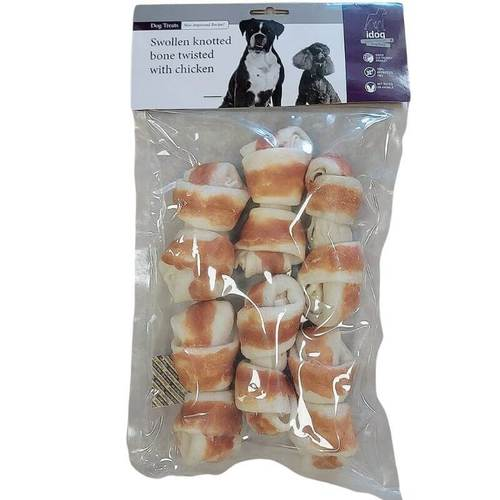 איידוג עצם קשר בליפוף עוף באורך 10 ס"מ – מומלץ כחטיף דנטלי לכלב.