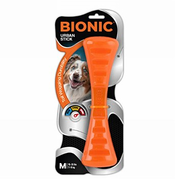 BIONIC Urban Stick הוא מקל צעצוע לכלב בגודל M מיועד לכלבים בינוניים. הצעצועים עמידים במיוחד ללעיסות חזקות ומוכחים כעמידים במיוחד. הם מיוצרים מחומרים לא רעילים המאושרים על ידי ה-FDA, ומצוידים בעיצובים מרתקים ובתכונות אחסון חטיפים משיכה ואינטראקטיביות עם תאי פינוק, כדי להעסיק את הכלב במשך שעות.