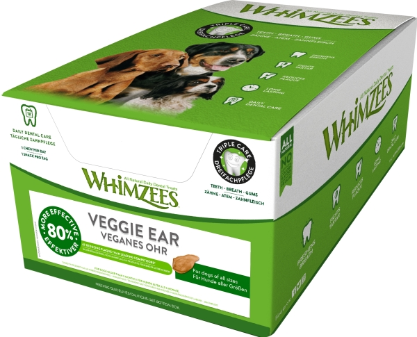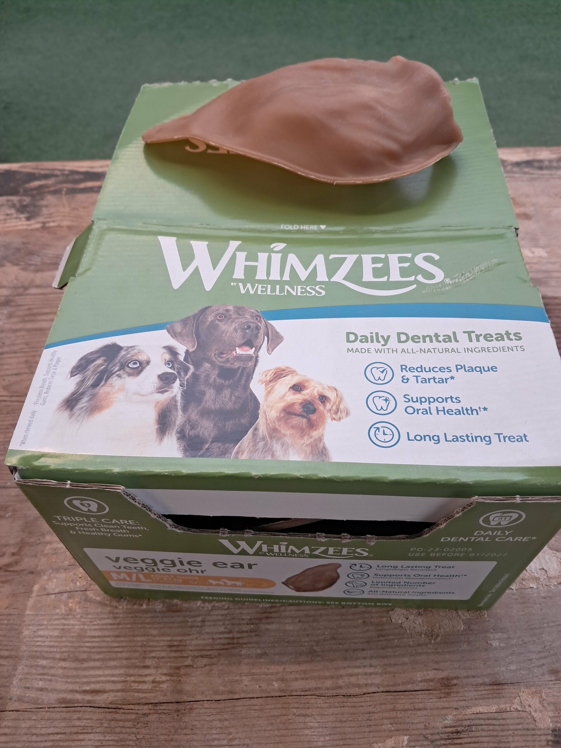 ווימזיס אוזן צמחית היא חטיף לעיסה לכלבים בצורת אוזן, המיוצר מחומרים צמחיים בלבד.
