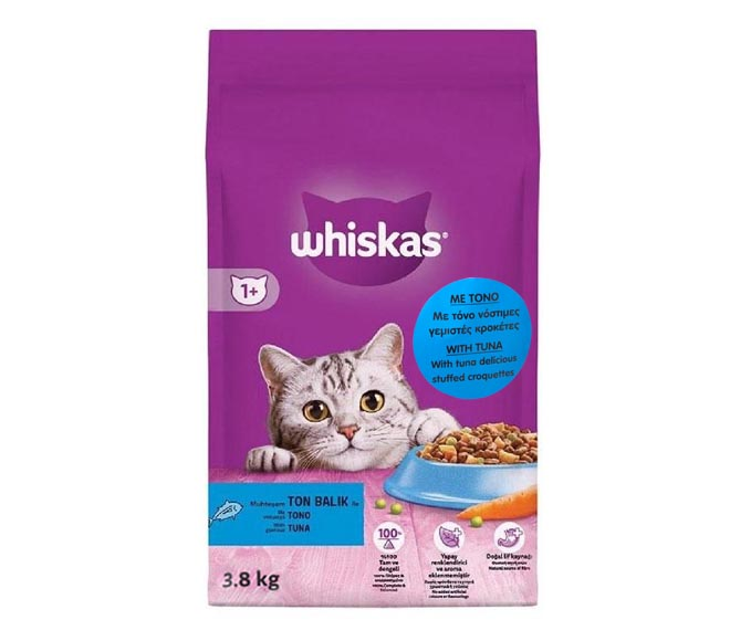 Whiskas Adult בטעם טונה, בשק במשקל של 3.8 ק"ג, הוא מזון יבש מלא לחתולים מבוגרים. המזון מיועד לסייע בתזונתם הבריאה ומספק תזונה מאוזנת וטעימה, מתאים במיוחד לצרכיהם התזונתיים של חתולים מבוגרים.