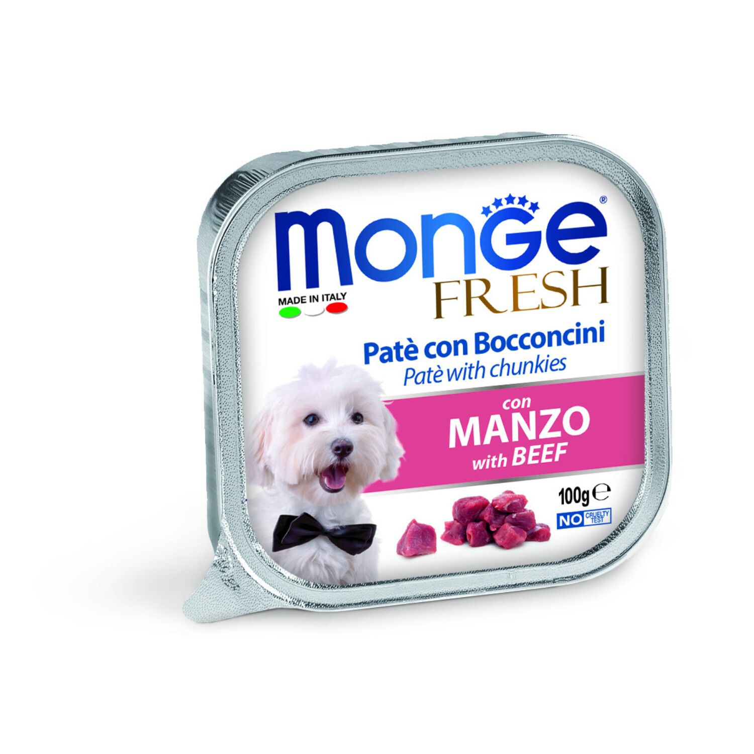 מזון רטוב פטה עם מרכז של חתיכות בקר טריות ומפנקות שנבחרו בקפידה ועברו צלייה בתנור, המעניק לחברינו על ארבע את כל מה שדרוש. בתוספת ויטמינים ומינרלים, ללא חומרי צבע ומשמרים, דל בסוכר, מזון אידיאלי לכלבים קטנים וכפינוק לכלל הכלבים. תוצרת איטליה.