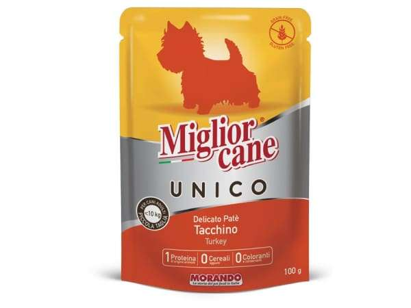 **מזון לכלבים פאוץ מיגליור יוניקו בטעם הודו, 100 גרם**