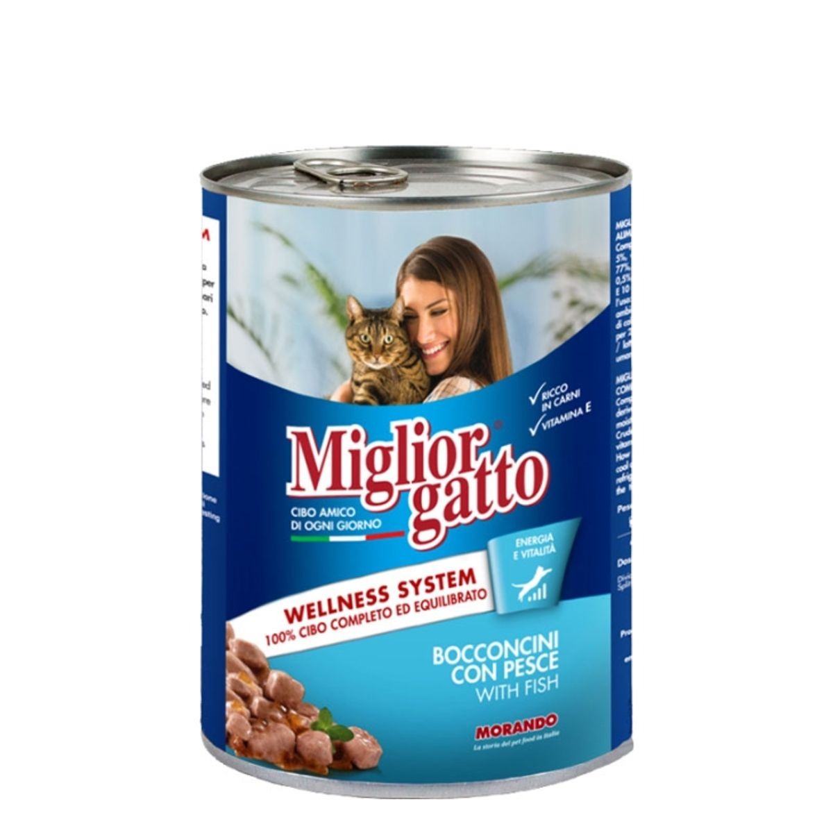 מורנדו שימור לחתול דג 405 גרם הוא מזון רטוב איכותי המיועד לכל גילאי החתולים.