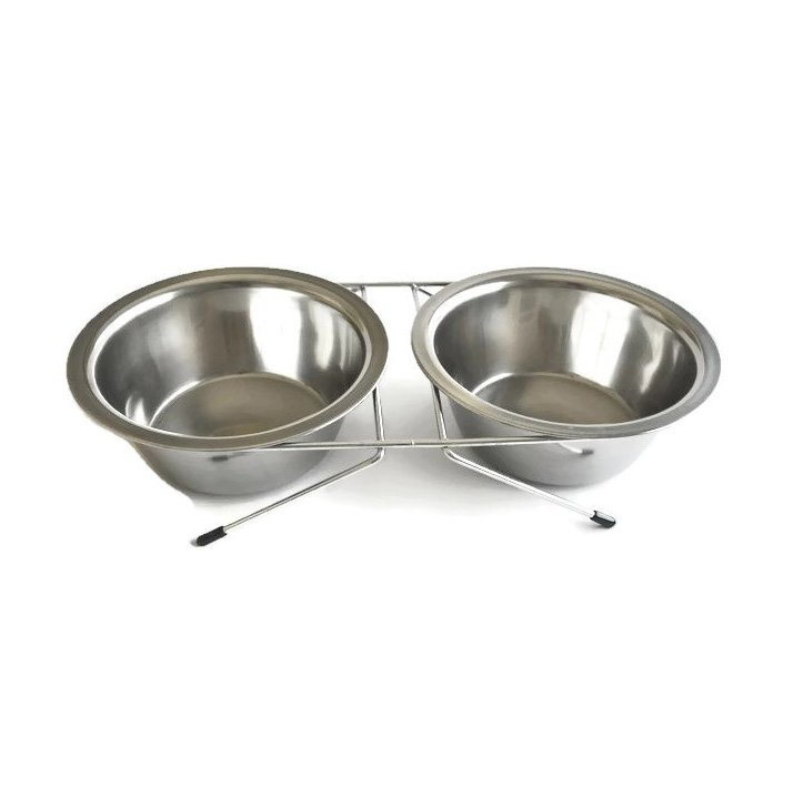 קומר צמד קערות נירוסטה 0.25 ל ומעמד הוא אביזר נהדר לכל כלב. קערות הנירוסטה חזקות ועמידות, וקלות לניקוי. המעמד מגביה את הקערות, מה שמקל על הכלב שלך לאכול ולשתות.